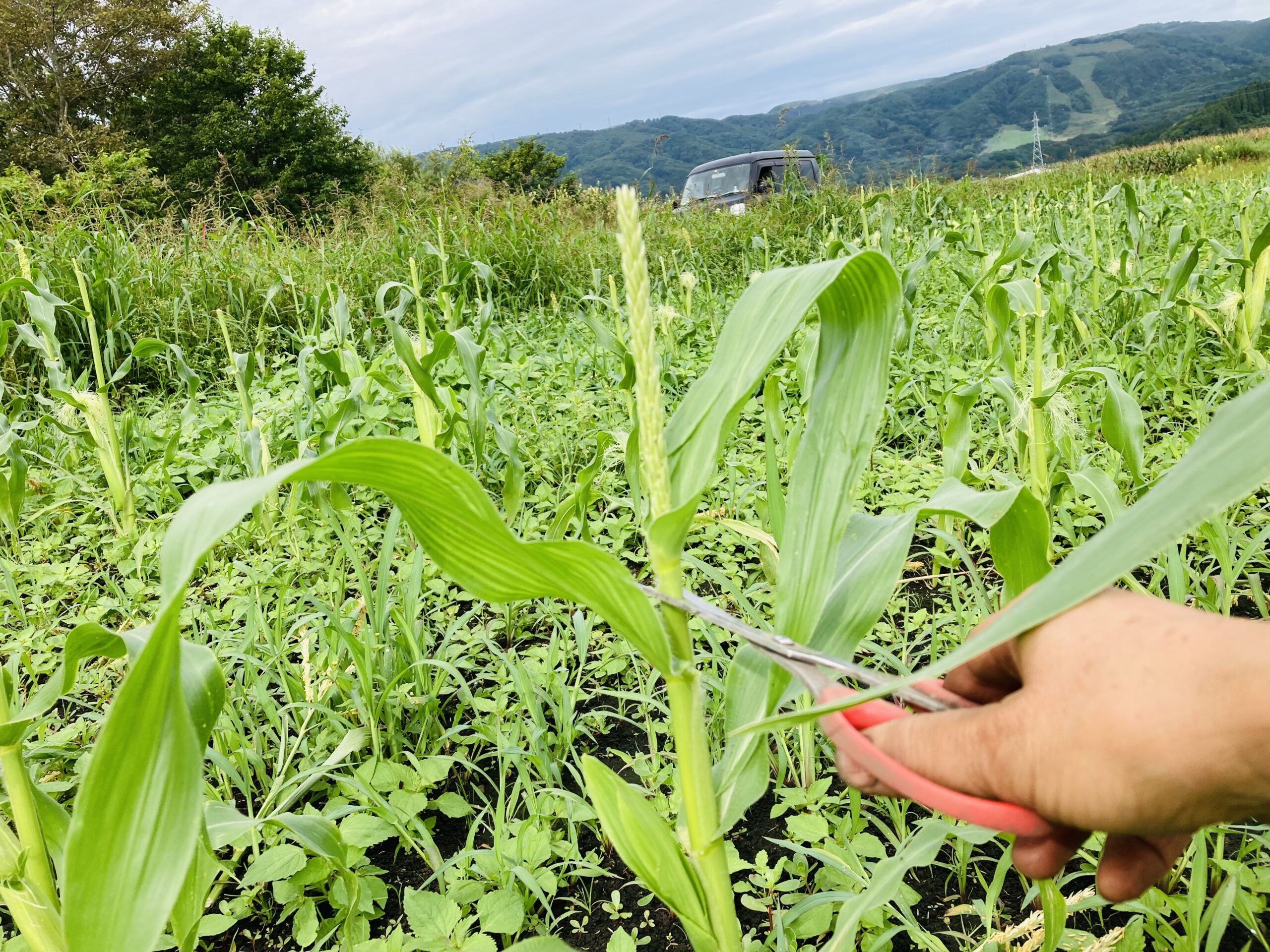 容赦なく切り落とす。何故ならヤングコーンは未成熟のコーンなので 受粉させてはならぬのです。
