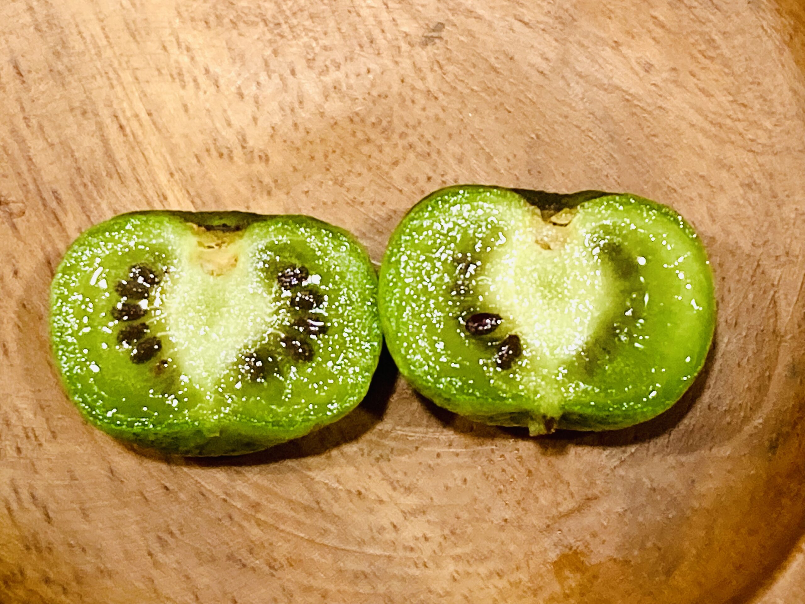 横に切ると キウイにそっくりですね*\(^o^)/*味もほとんどキウイです。