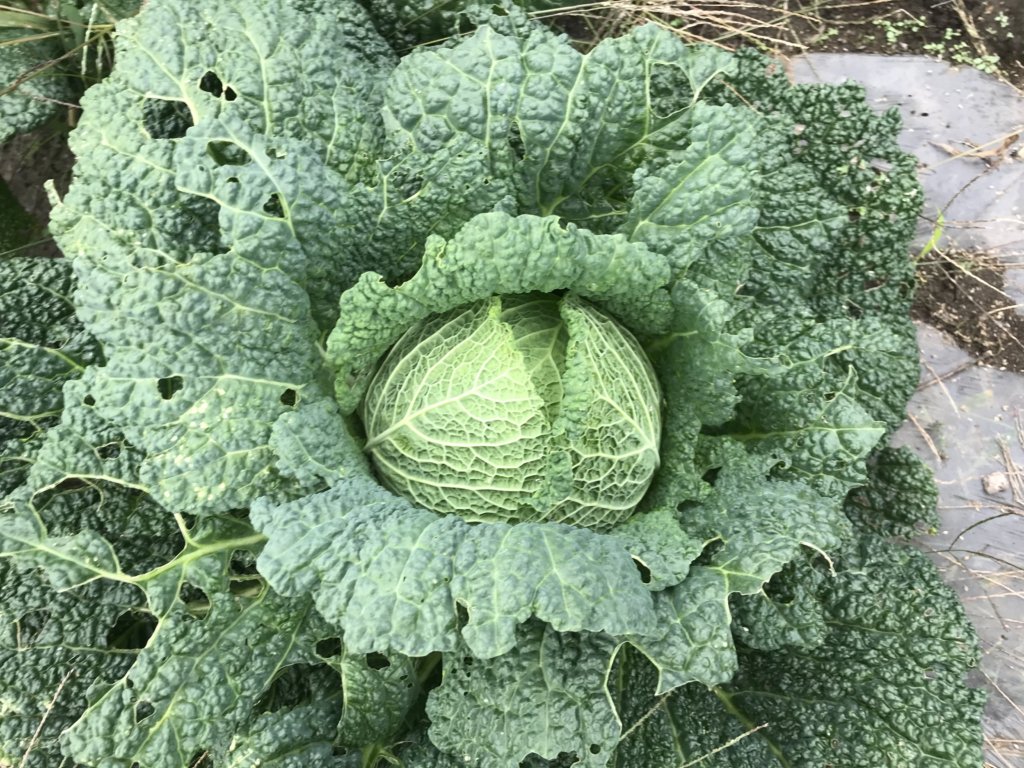 路地に植えてみた 西洋野菜のサボイキャベツ。